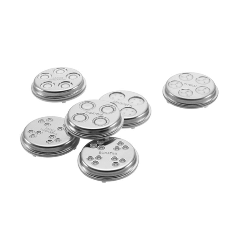 Incluye seis discos intercambiables , ofrece versatilidad permitiendo hacer diferentes tipos de pastas , spaguetti , bucatini , rigatoni , fusilli y macarrones.